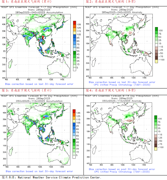 9月天然橡胶主产区处于旺产期。在此期间,东南亚主产区持续降雨,泰国、越南、马来西亚降雨量较往年同期基本持平。云南产区受台风“桦加沙”影响降雨量大,但台风并未正面登陆海南产区,所以“桦加沙”对橡胶产量影响并不如去年“摩羯”对橡胶的产量影响大。10月天气,根据美国气象局天气预报显示,东南亚降雨持续增加,集中在中南半岛,对主产区的影响较小,预计10月橡胶产量增加。