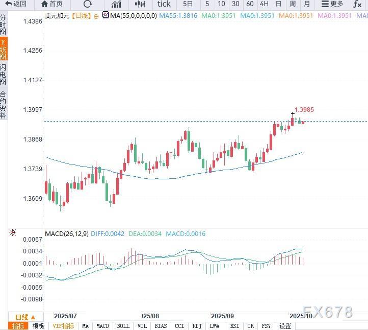 汇通财经APP讯——美元兑加元(USD/CAD)在亚洲早盘保持升势,报1.3950附近,受美元反弹提振。然而,市场对美国政府长期停摆的担忧,以及国际油价持续回升的走势,令汇价上行空间受限。