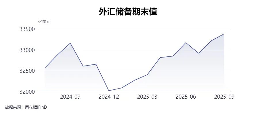 截至2025年9月末,我国外汇储备规模为33387亿美元