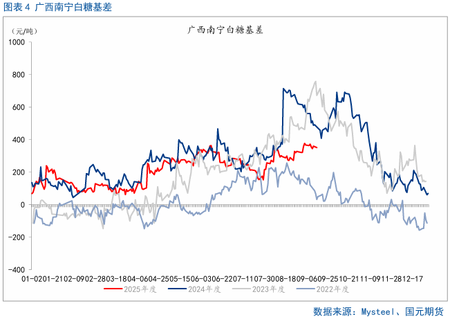 近期白糖随着整体商品市场交易美联储降息逻辑而出现了跟随性的反弹,导致基差出现小幅回落。