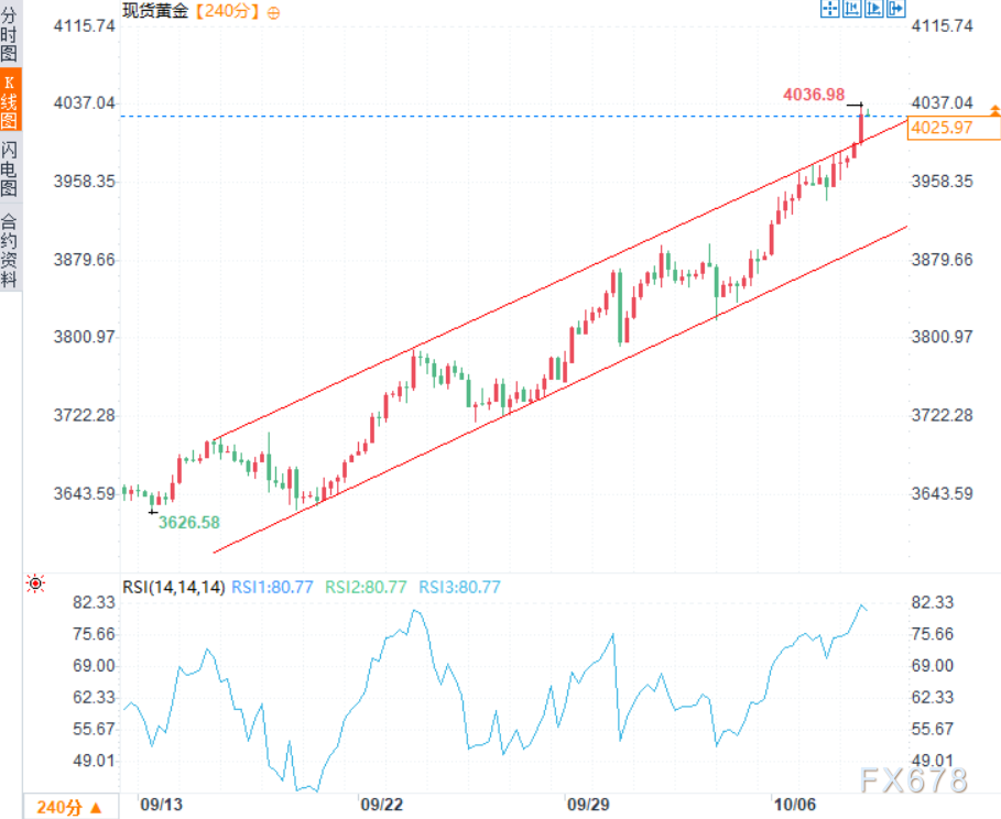 周三金价稳站4000美元大关上方,确认了自九月中旬延伸的上升通道实现新一轮突破。