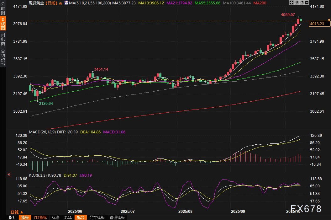 汇通财经APP讯——在全球金融市场动荡不安的2025年,黄金作为传统避险资产的魅力再度绽放。金价周三(10月8日)不仅首次突破每盎司4000美元大关,现货黄金一度刷新历史高点至4059.07美元/盎司,还带动银价创下历史最高收盘价。然而,就在涨势如火如荼之际,中东地缘政治局势的突然转折——哈马斯与以色列达成停火协议——迅速冷却了市场避险情绪,导致周四(10月9日)金价出现回调,值得投资者高度警惕。