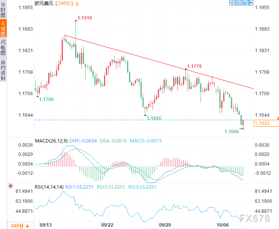 汇通财经APP讯——欧元兑美元周三(10月8日)连续第三个交易日走低,一度跌至一个月以来最低水平(1.1606),而后小幅回升,现交投于1.1635附近,法国政治财政局势引发的担忧叠加美国政府长期停摆的忧虑,持续压制市场的风险偏好。