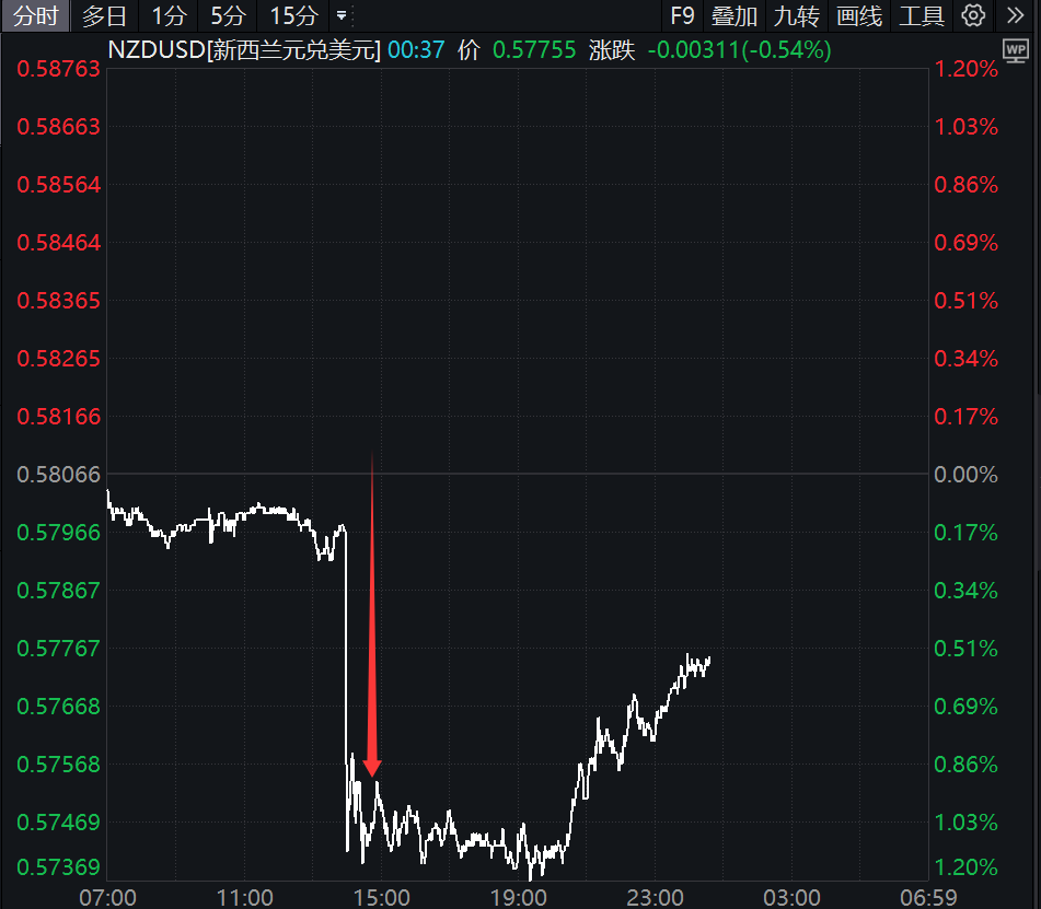 在上述超预期的降息消息宣布后,新西兰元兑美元汇率直线大跳水,盘中跌幅超过1%,创出4月中旬以来新低。截至记者发稿时,新西兰元兑美元汇率跌幅收窄至0.54%。