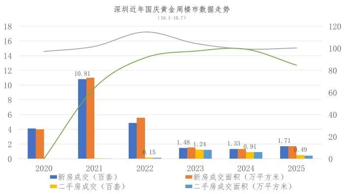 从数据面上看,今年中秋国庆长假期间,深圳房地产市场表现整体较为平淡,并未出现明显的“金九银十”升温现象。