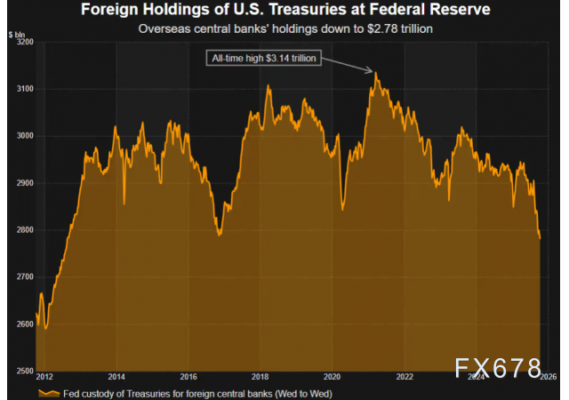 标准银行的Steve Barrow表示,托管持有量的下降值得警惕,尤其是在美元明显疲软之际。外国央行通常在美元走强时才会抛售美债,以筹资干预汇市。