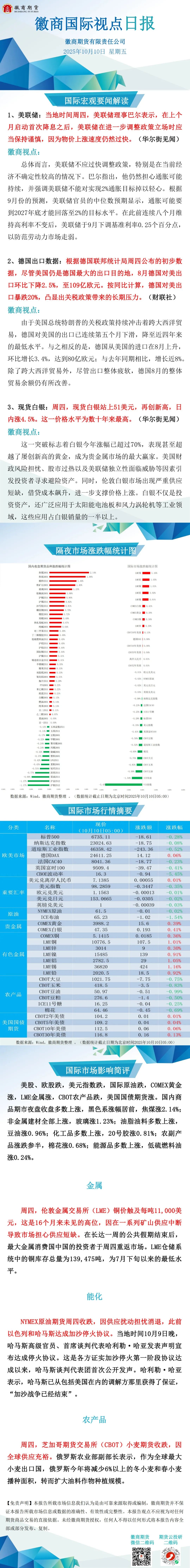 【徽商国际视点】现货银价冲破50美元关口刷新高。美联储理事巴尔强调通胀风险。德国8月对美出口跌至四年新低