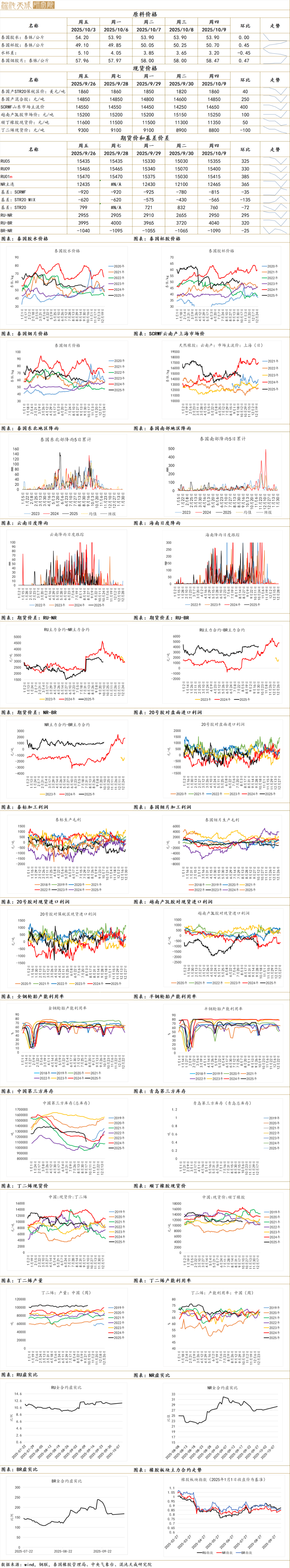 1.机构消息:预计下周期(20251010-1016)轮胎样本企业产能利用率将明显走高,据了解,10月8号前后各检修企业逐步复工复产,将对下周期样本企业产能利用率形成拉动。(隆众资讯)