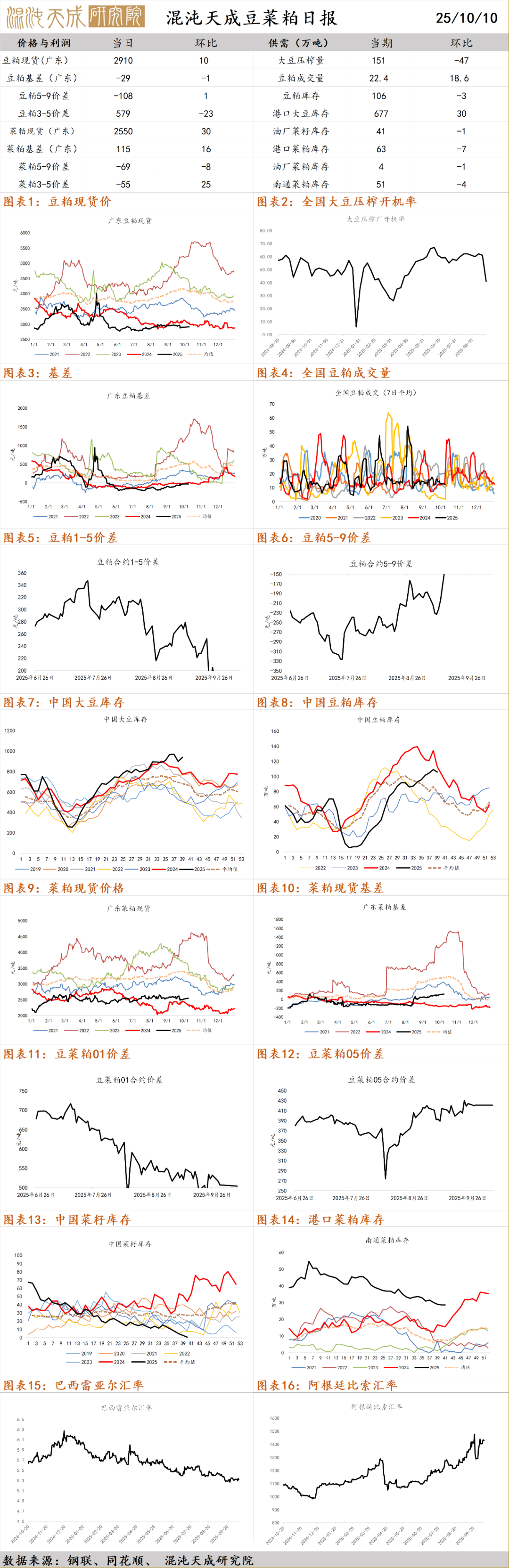 宏观消息:10月2日,特朗普在社交媒体上公开表示将在几周后与中方领导人会晤并讨论大豆贸易议题;美财长贝森特亦表示中美将在下一轮贸易谈判中取得“相当大的突破”。