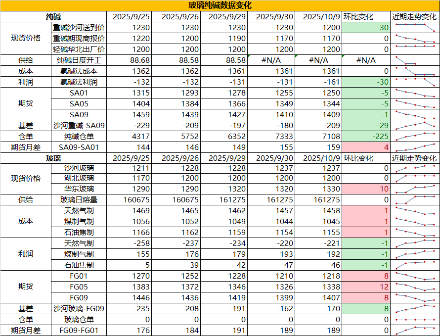 1.当前现货市场偏稳定,过节期间碱厂累库为主,节后盘面下跌,期现成交较好,玻璃厂大量从期现端补库,侧面对碱厂形成负反馈,另外光伏玻璃基本面转弱,前期点火计划放缓,侧面对纯碱的刚需减弱,现货10月供需压力加大。