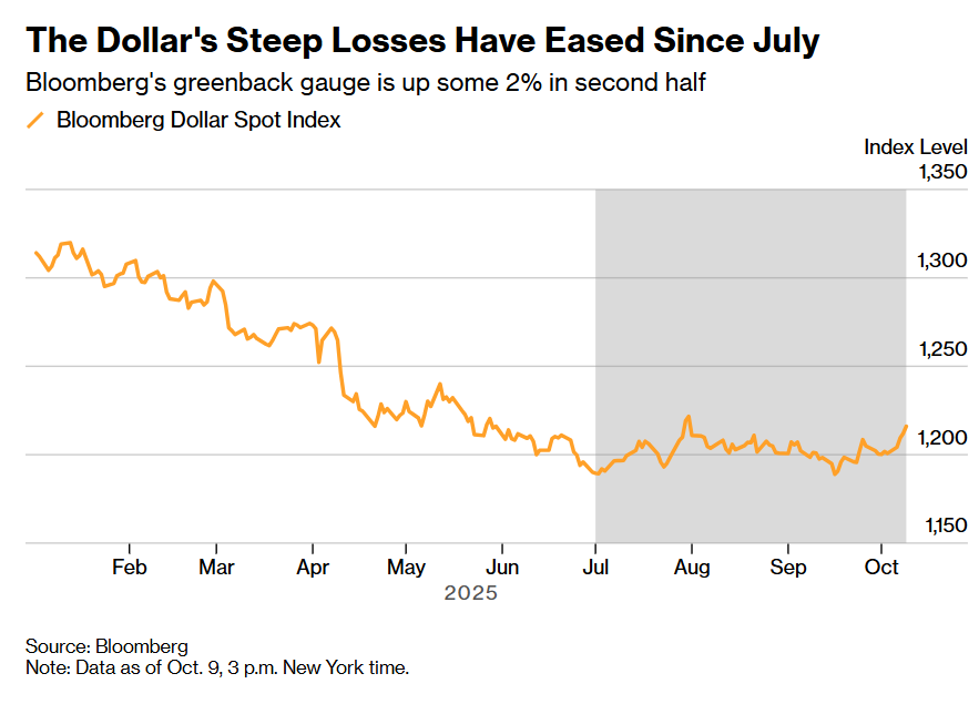 美元自7月以来的急跌已趋缓——美元指数在下半年上涨约2%