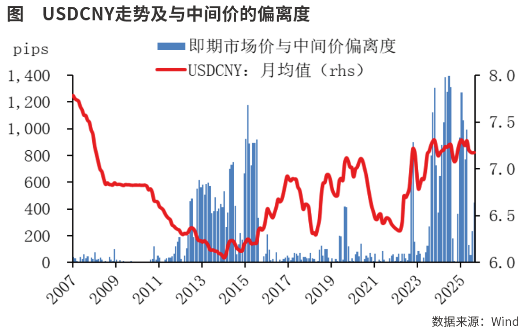 一是人民币汇率的定价出现扭曲,中国经常账户顺差自2014年起增长放缓,加之资本外流压力隐现,人民币贬值压力不断加大,导致中间价与供需决定的市场价存在“脱节”,“政策定价”与“市场价格”存在一定偏离。