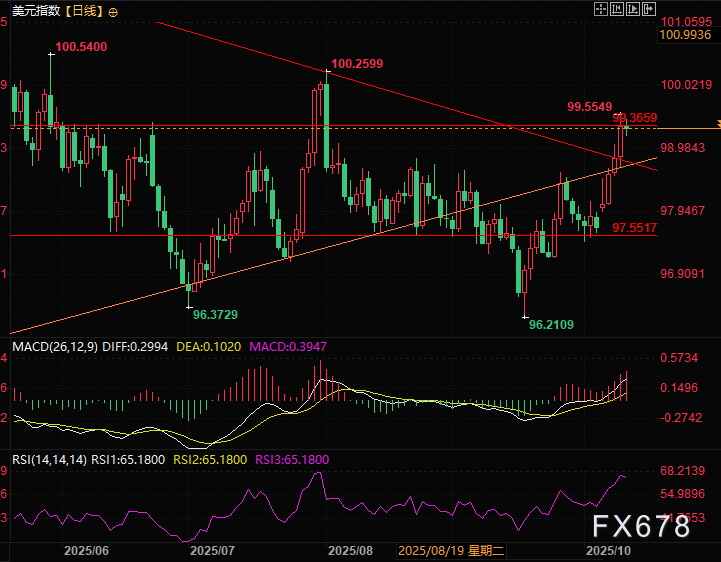 由于美国政府停摆导致多数美国经济指标延迟发布,美联储政策制定者近期释放的鸽派言论,结合法国和日本的情况,一定程度上遏制的美元继续快速的上涨。