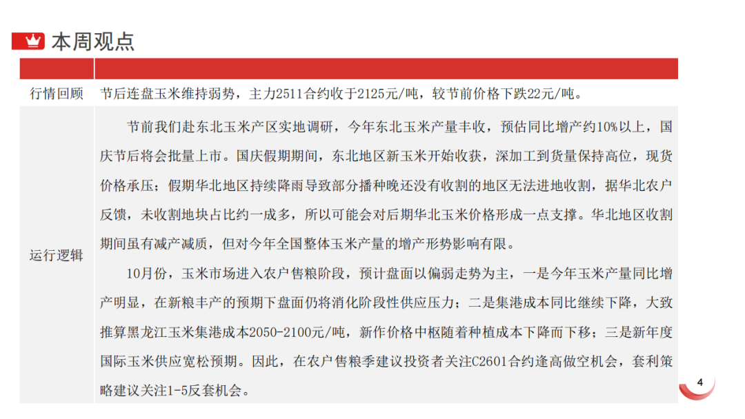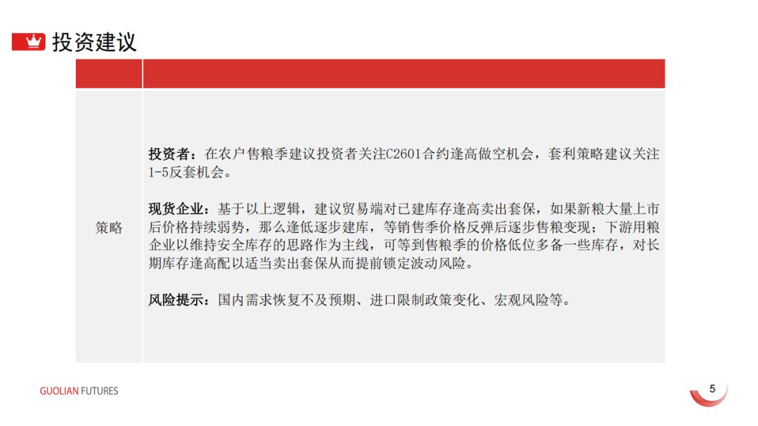综上,我们认为前期减产炒作以及种植成本抬升的预期市场已经逐步消化,随着新粮的上市,期价或迎来季节性调整,但受成本支撑,下方空间或有限。