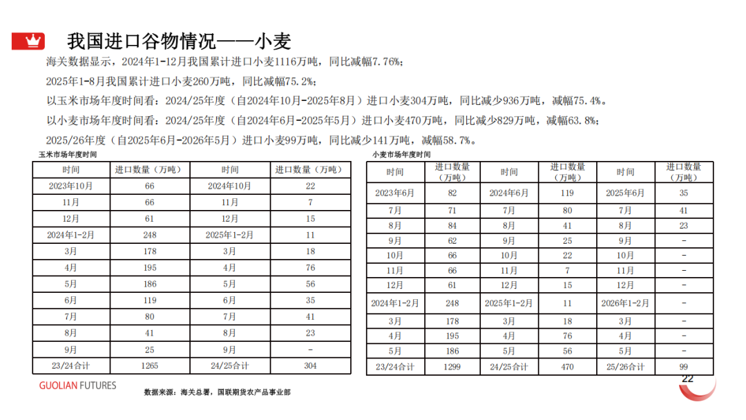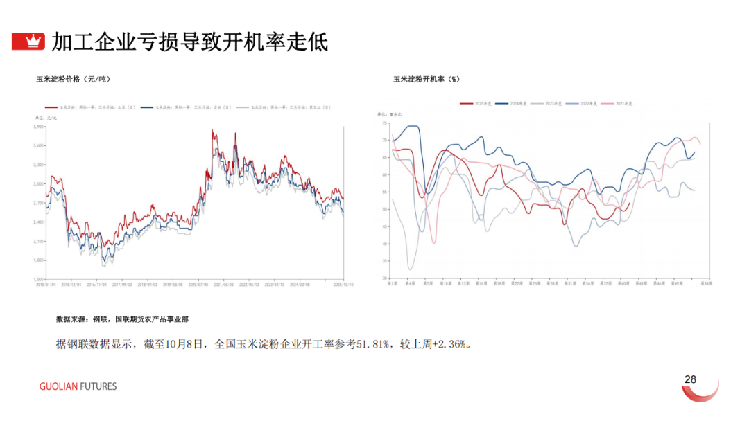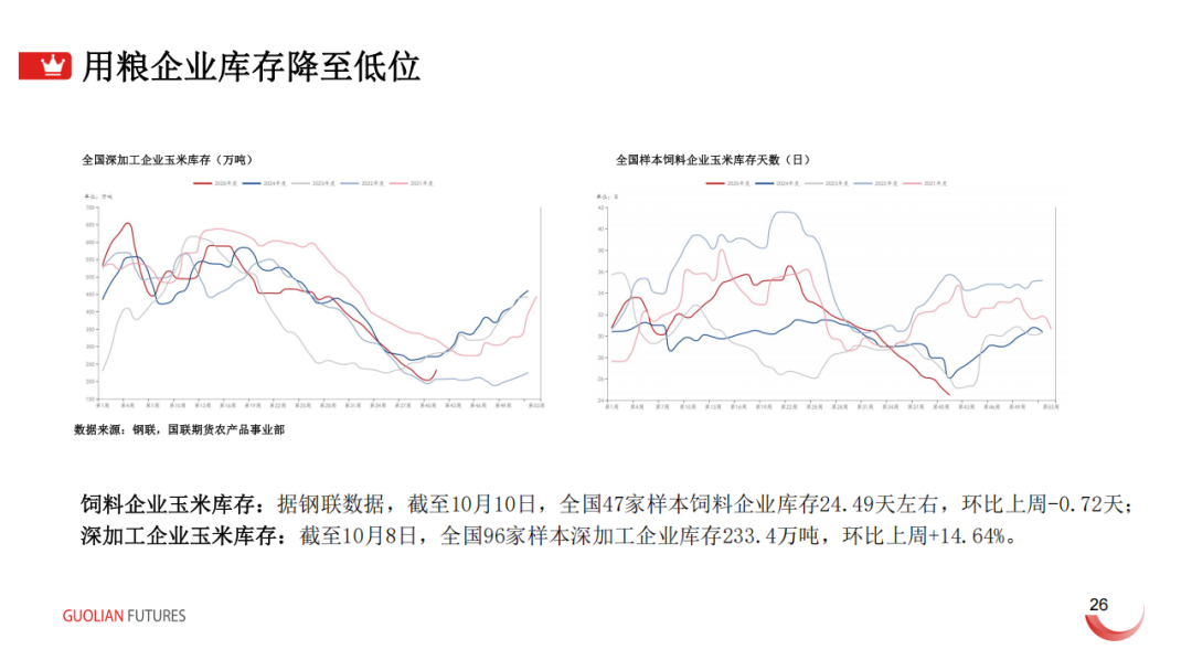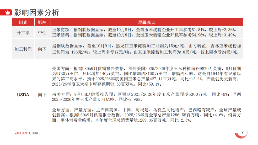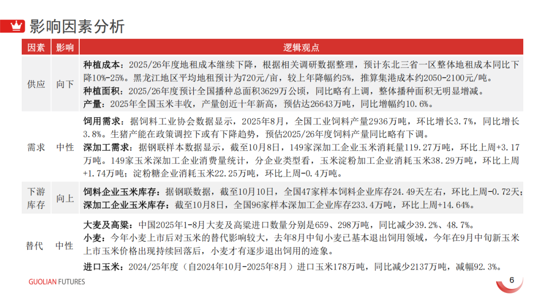逻辑:上游,陈粮拍卖成交回暖,出库压力叠加新粮上市或抑制玉米价格。下游,生猪和能繁母猪存栏量继续走低及疫情爆发蔓延,不利于玉米消费;深加工方面,随着淀粉价格走高,其替代优势在缩小,需求增量下降,边际提振效应下降。