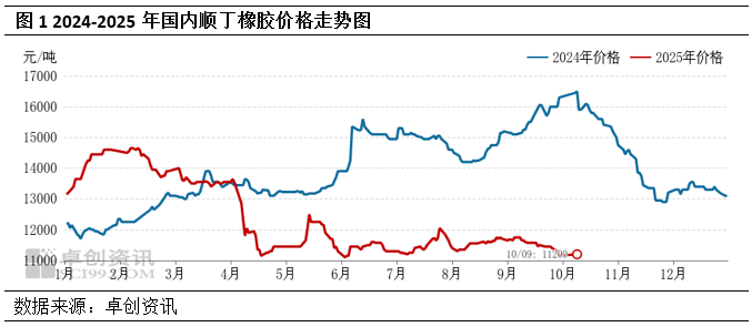 9月宏观面“反内卷”、台风天气、天胶抛储、美联储降息、关税等消息对现货市场指引有限,现货价格陆续回归基本面运行,顺丁橡胶价格涨后回落。月初价格整体延续上月涨势,原料丁二烯国内供需矛盾不突出,价格区间盘整托底顺丁橡胶运行;顺丁装置检修集中,下游轮胎厂跨月刚需补货,给予行情阶段性支撑;中旬丁二烯新产能投产预期明朗,市场商谈偏空,叠加宏观面墨西哥对华汽车加征关税、天胶主产区降水量减少等利空,行情重心下移,临近月末,市场观望下游轮胎厂双节放假情况,基本面预期与现实博弈,价格低位整理。