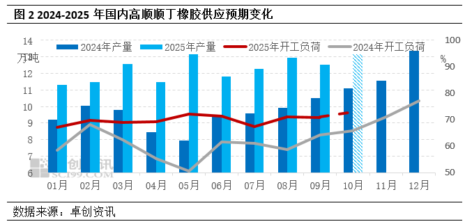 10月来看,齐鲁石化、扬子石化装置存在检修计划,威特化工、益华橡塑重启运行,其他装置正常生产为主,顺丁橡胶月度产量预计提升,开工或提升至73%附近。