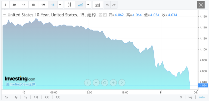 美东时间10月10日,买盘在整个交易时段持续涌入美国国债市场,美国5年期国债收益率一度下跌10个基点,美国10年期国债收益率下挫11.8个基点,报4.034%;美国30年期国债收益率下跌9.4个基点至4.639%。