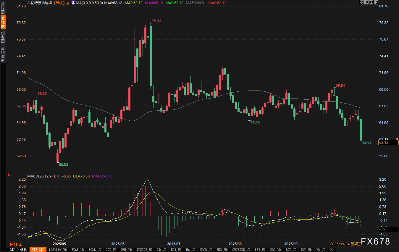 从技术图表上看,(如附图所示),油价的急剧下滑打破了此前数月的震荡区间,MACD等技术指标快速转弱,显示出市场情绪已从平衡转向明显的看空主导。