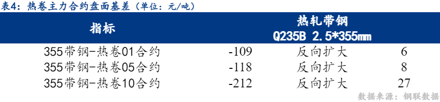 29日市场热卷01合约与唐山355带钢价差反向扩大6元/吨,热卷05合约与唐山355带钢价差反向扩大8元/吨。