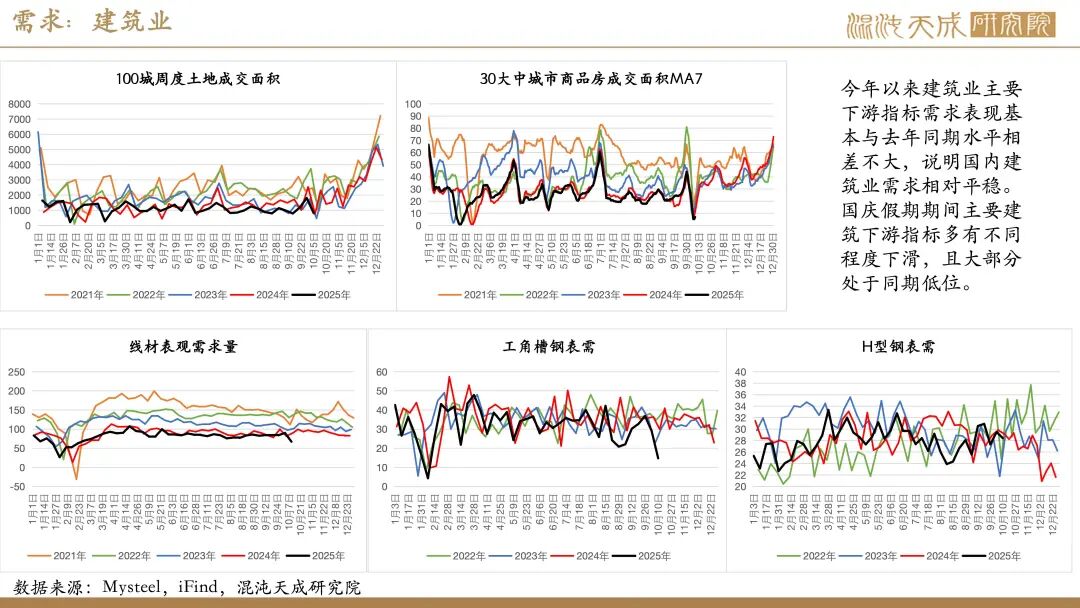 需求:受国庆假期影响,近期建筑业及制造业下游高频指标多有不同程度回落。不过,假期海外钢价大多表现平稳,仅美欧、独联体、中东钢价有小幅回落,印度钢价有所上涨,国内钢材仍有一定出口空间。此外,假期国内港口货物吞吐量及集装箱吞吐量仍处同期高位,叠加南美东、印巴、澳新等多个航线价格上涨,显示当前国内商品出口仍保持强劲。