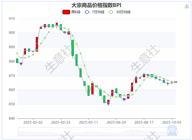 10月11日大宗商品价格指数BPI为866点,较周初上涨了135.52%,2.00%。