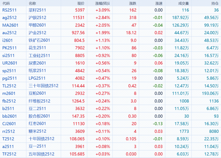 10月13日,午盘收盘,国内期货主力合约涨跌互现。玻璃跌近4%,低硫燃料油(LU)下跌3%,丁二烯橡胶、生猪、20号胶、橡胶跌近3%;涨幅方面,沪银、甲醇涨超2%,沪金、铁矿石、花生涨超1%。