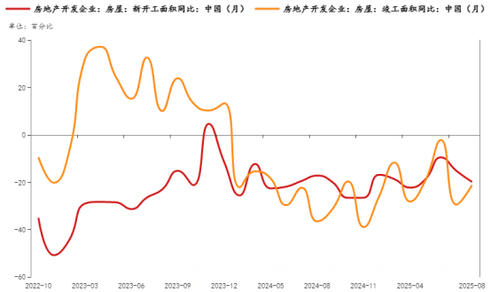 (2)内外需双弱,旺季不旺特征显著。房地产需求持续低迷,尽管销售端同比降幅收窄,但8月新开工面积同比仍降幅达19.84%,竣工面积同比下降 21.26%,显示房地产行业仍处于“保交楼”为主的被动去库阶段,对玻璃的实际需求尚未启动。