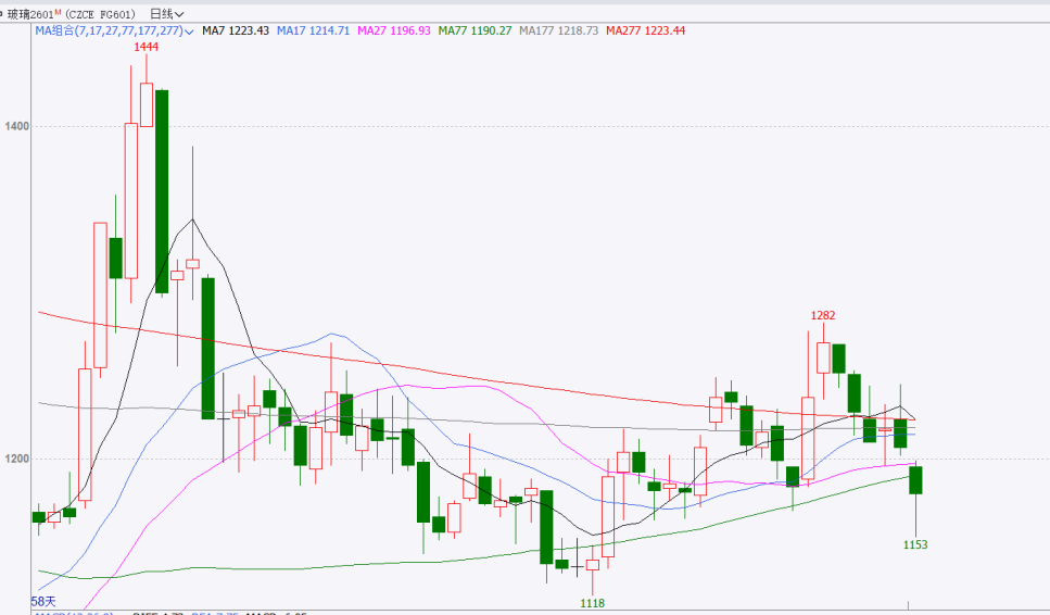 玻璃今日大跌是供应过剩预期强化、需求修复不及预期、库存累积压力显性化共振的结果。短期内,在冷修产能未大规模释放、房地产销售未见实质性回暖的情况下,玻璃市场仍将面临供需双弱格局。需重点关注10月中下旬沙河地区产线改造进展、北方天气变化及房地产政策落地效果,若供应收缩不及预期或需求持续疲软,价格可能进一步下探。