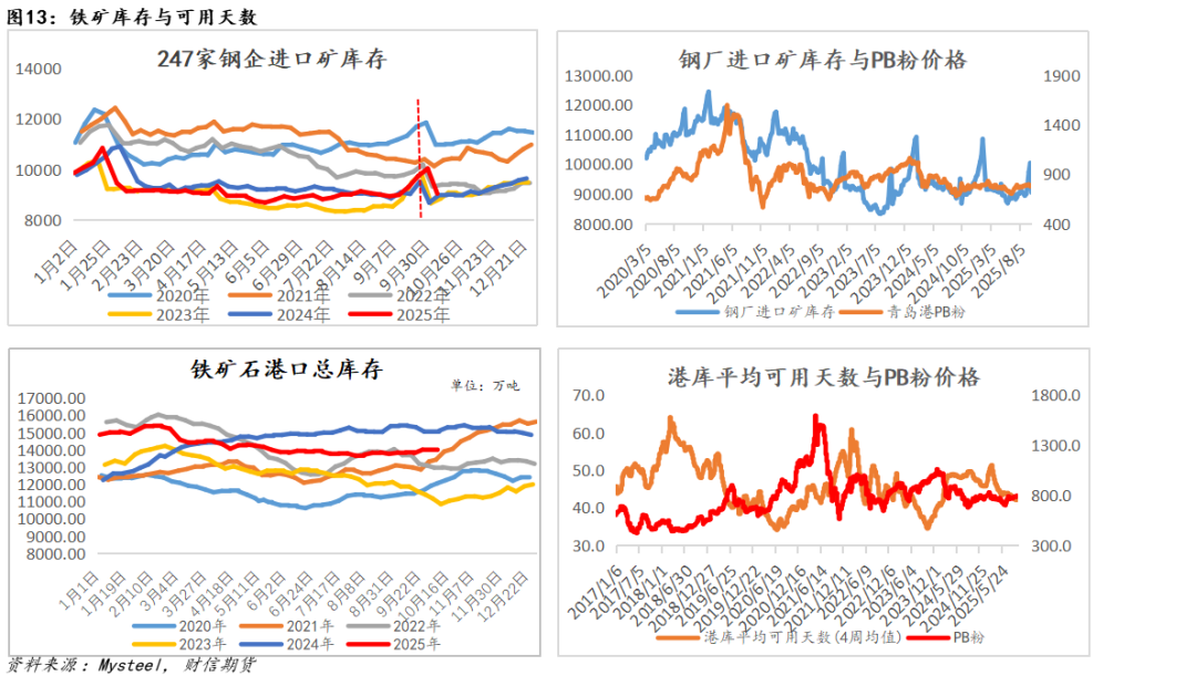 铁矿方面,钢厂以消化自有库存为主(节后钢厂进口矿库存大幅下降,采购意愿一般);铁矿石港口维持小幅波动,自身供需矛盾有限。后期需持续跟踪铁水产量下降速度。