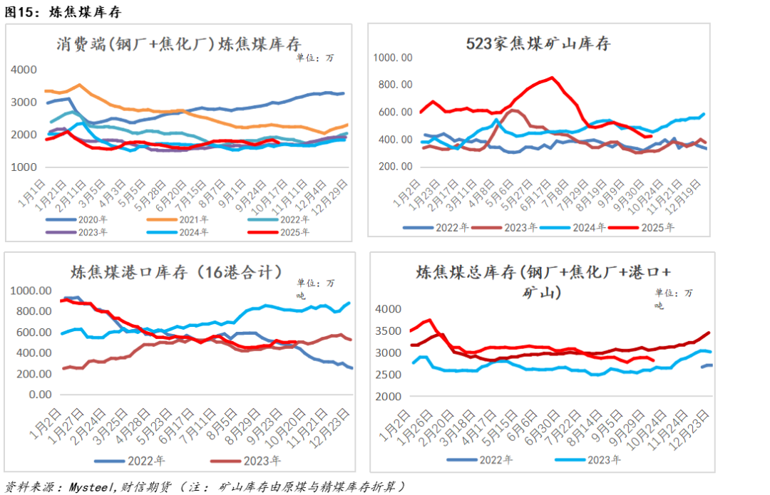 炼焦煤方面,钢厂利润收窄,焦炭继续上涨难度加大,下游焦企对原料煤采购节奏放缓,煤矿出货转弱,考虑到目前煤矿库存仍处于偏低水平,短期内下跌空间或有限。安检趋严及严查超产政策仍存,关注煤矿开工情况。
