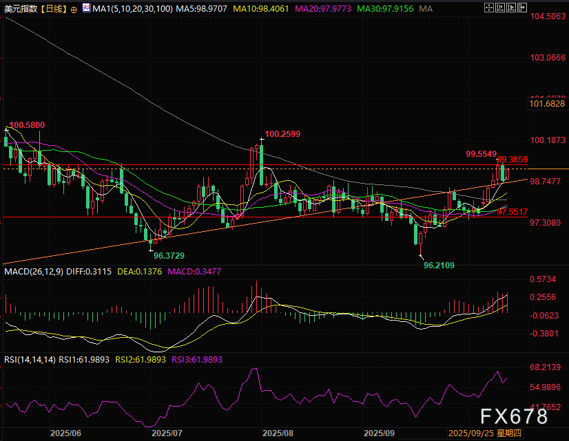 (美元指数日线依然表现强势,维持在5日线之上,来源:易汇通)