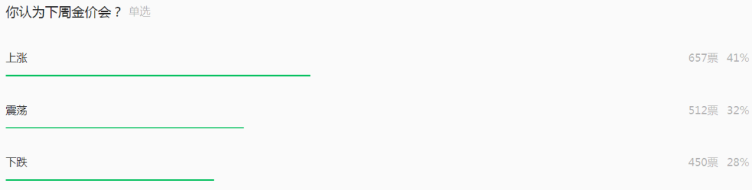 10日6日当周,伦敦金价格开盘3888.62美元/盎司,最高4059.32美元/盎司,最低3884.03美元/盎司,收盘4010.40美元/盎司。截至发稿时,伦敦现货金价盘中高点4077.97美元/盎司、纽约期货金价盘中高点4096.7美元/盎司双双刷新历史纪录。北京黄金经济发展研究中心调查显示,市场人士认为本周国际金价震荡可能性较大。投票显示,有41%的读者看涨本周金价、32%看震荡、28%看空。