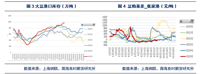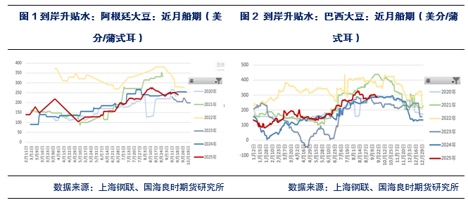 从远期采购进度来看,四季度大豆采购进度仍显滞后。截至9月23日,11月大豆采购仅完成35%,12月采购进度更为迟缓,仅完成3%,11-12月仍有约836万吨的采购缺口待补。而根据此前对阿根廷出口量级影响的估计,并未完全弥补该缺口,远期国内供需缺口仍存。这意味着中期内,市场交易逻辑仍将主要围绕供需预期差的变化展开。值得注意的是,无论中美谈判结果如何,大豆进口成本上行的预期已然形成,这一因素将随着预期差的逐步明朗而成为影响市场走势的关键变量。