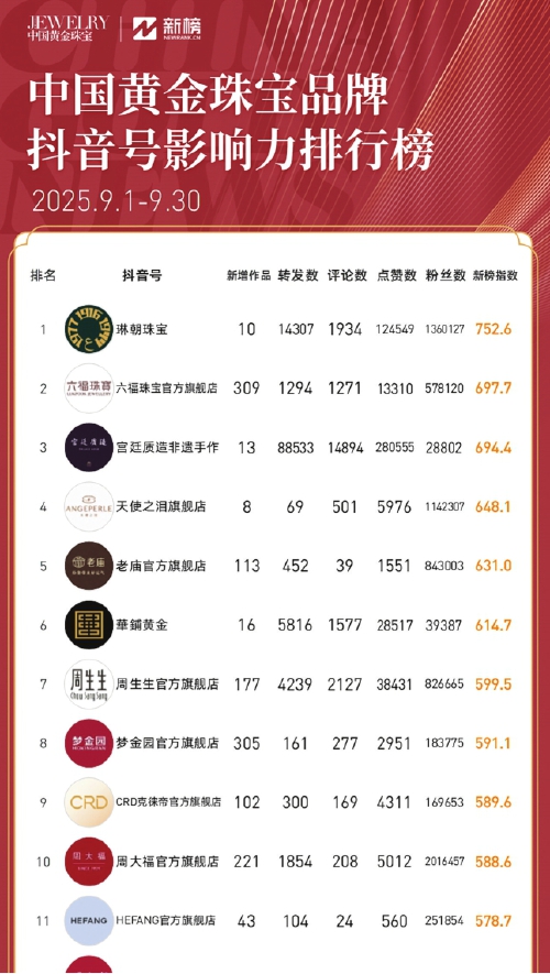 综上所述,9月的抖音珠宝战场,是一场内容效率与品牌战略的全面较量。新锐品牌凭借精准的定位和优质的内容实现了“四两拨千斤”,但其风格同质化的苗头,也为它们敲响了警钟;而部分传统品牌则困于路径依赖,显露出疲态。
