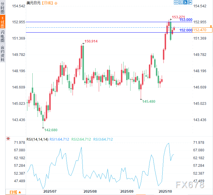 汇通财经APP讯——周二(10月14日)亚市时段,美元/日元获买盘支撑升至152.45附近。随着美国总统特朗普在对华表态上转变基调,美元兑日元走强。市场正密切关注美联储主席杰罗姆·鲍威尔将于晚些时候发表的讲话。