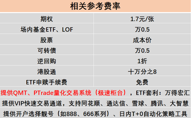 以下是期权量化交易相关费率标准,我司上市证券公司,欢迎电话/微信联系开户!