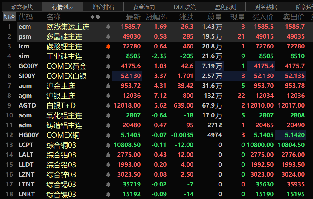 此外,铸造铝主连期货涨0.47%,氧化铝主连跌0.64%。碳酸锂主连涨0.64%,工业硅主连跌2.35%。多晶硅主连涨0.58%。