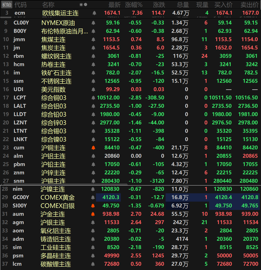金属普跌伦铜跌近3%沪金银涨超2%再刷新高欧线集运飚涨逾7%【SMM日评】