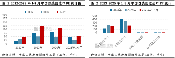 自2025年10月14日起,对美国船舶收取船舶特别港务费。对于聚烯烃产品来说,中国市场聚烯烃贸易不可避免进出口贸易,PP与美国进出口贸易相对有限,而PE的供应自美进口货源仍有较大占比,2024年其进口依存度达30%以上。2025年1-8月份,中国自美进口PE仍以14.17%的占比维持主要贸易伙伴地位。该政策预计会导致未来中国聚烯烃美国货源供应减少。