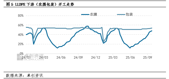 9月下游开工多数提升。9月农膜开工上涨16个百分点至48%,薄膜开工提升1个百分点至43%