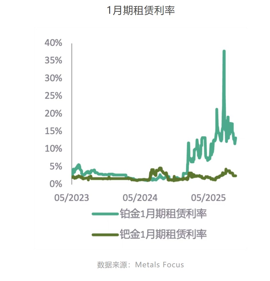 与铂金走势一致,钯金价格同期也实现上涨,但驱动因素有所不同。现货钯金自5月19日以来累计涨幅超过170美元。然而与铂金不同,此轮涨势并非源于实物供应紧张。5月时,钯金价格仍低于970美元/盎司,租赁利率维持在低位,远期曲线则呈轻微远期升水结构(contango),显示出实物供应充裕。至9月,钯金价格上涨则更多由投机仓位调整及交易所交易产品(ETP)资金回流驱动,而非市场对现货的即时抢购。