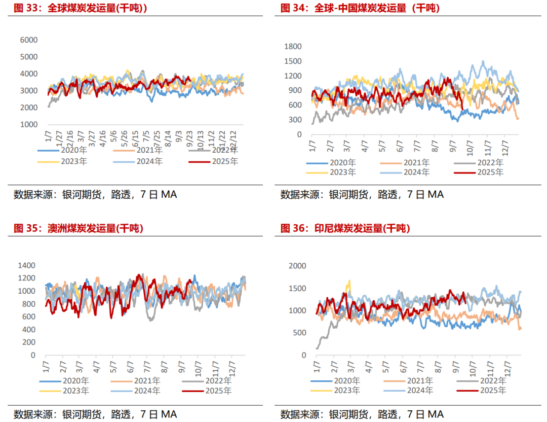 煤炭发运需求基本持稳,主要增量来自澳洲市场。根据路透数据统计,截至9月25日,9月全球煤炭发运8994万吨,相较上月同期+1.41%,同比+2.03%,其中,澳大利亚发运2611万吨,相较上月+10.81%,同比+7.57%,印尼发运3100万吨,相较上月同期-0.87%,同比+0.43%。
