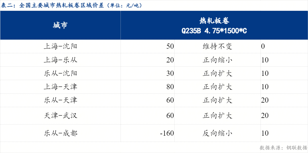 从区域价差来看,华东与东北价差50元/吨,较上一交易日持平 ;华东与华南价差20元/吨,较上一交易日正向缩小10 元/吨 ;华南与华北价差为60元/吨,较上一交易日正向扩大20元/吨 。