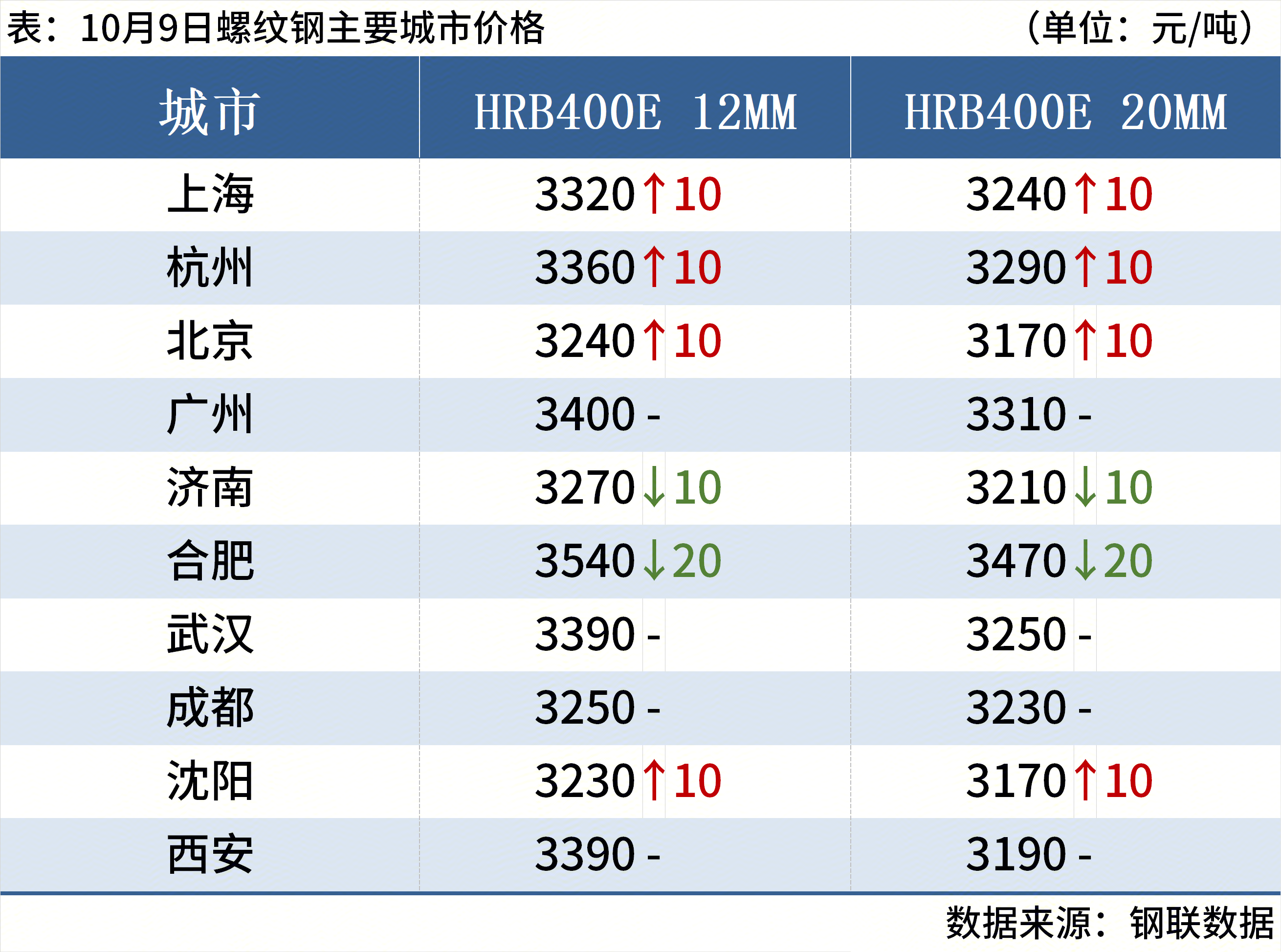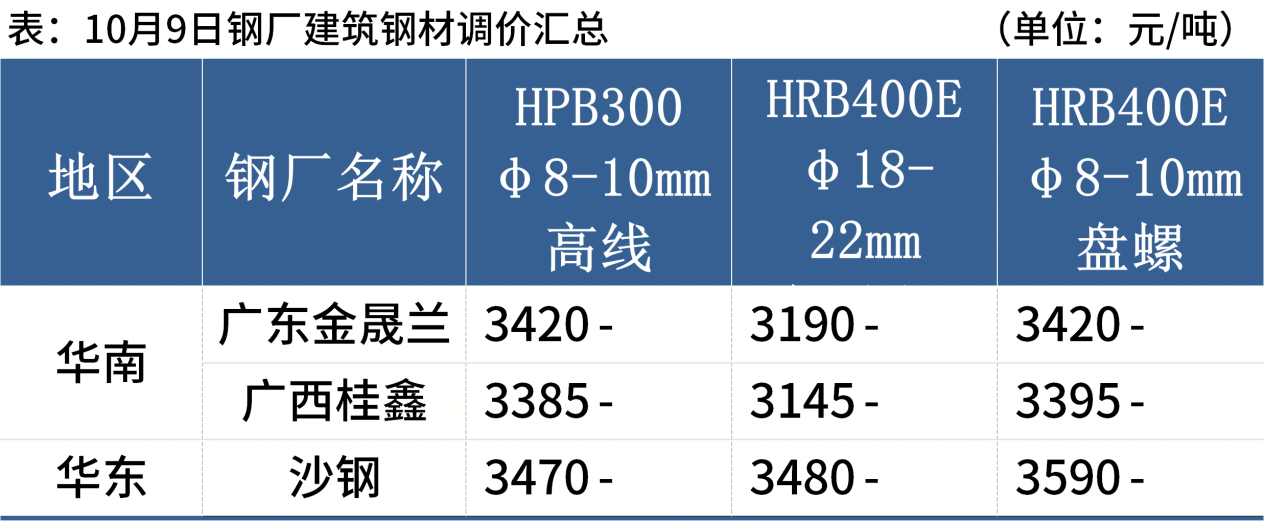 10月9日,钢厂建筑钢材出厂价平稳运行。