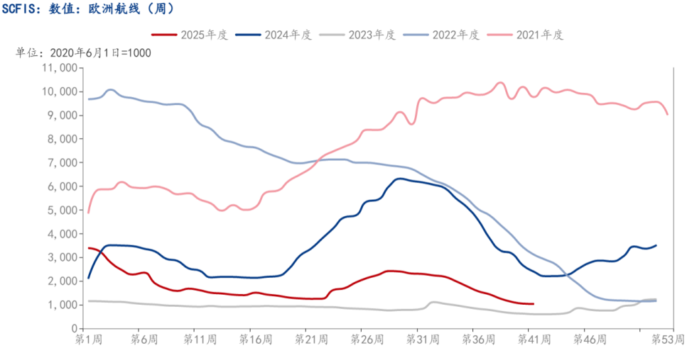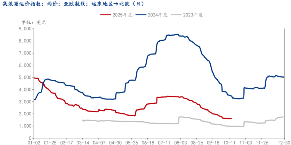 (3)从现货市场的情况来看,航司端挺价信号持续释放,成为提振市场信心的核心动力,不仅主流航司陆续跟进宣涨11月报价(如达飞已官宣亚洲至北欧航线运价升至2600美元/FEU),马士基更将44周报价锁定在1800美元/FEU,与10月下旬即期报价持平。这一报价一致性被市场解读为“前期宣涨逐步落地”的实证,显著增强了对11-12月至少两轮提涨的预期,直接激活EC2512合约的旺季属性预期。