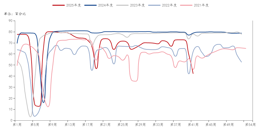 (4)至10月12日,我国天然橡胶社会库存108万吨,环比下降0.77万吨,降幅0.7%。库存呈季节性去库走势。