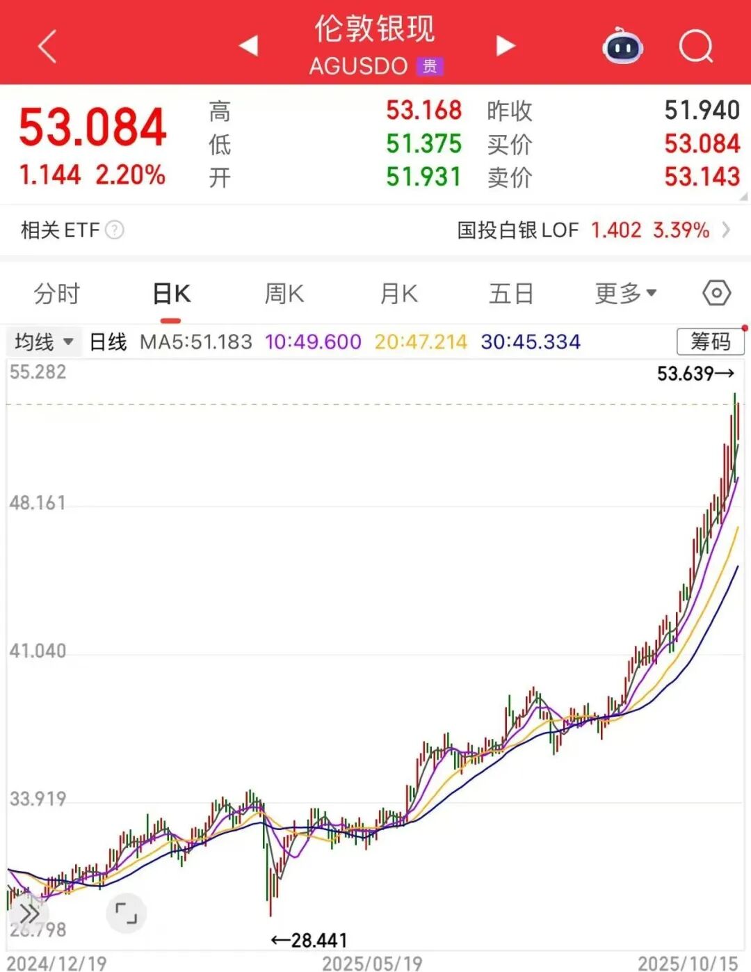 截至发稿,COMEX白银期货价格收涨3.76%,报52.525美元/盎司。伦敦银现货价格突破53美元/盎司,本月已上涨逾12%,年内涨幅更是超过80%。内盘方面,沪银期货主力合约上涨2.3%,周二盘中最高触及12096元/千克,本周上涨近8%。