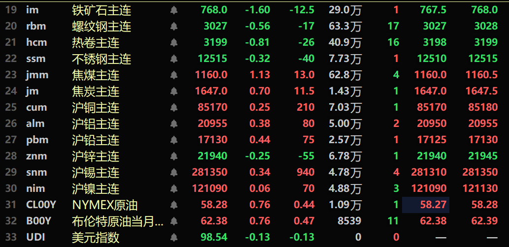 黑色系多飘绿,铁矿跌1.6%,螺纹跌0.56%,热卷跌0.81%,不锈钢跌0.32%。双焦方面:焦煤主力合约涨1.13%,焦炭主力合约涨0.7%。