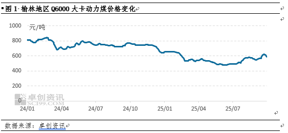 双节假期后,由于产地部分露天矿受降雨影响产量有所收紧,而贸易商对中旬国内重要会议可能公布重大经济刺季政策存在预期,投机意愿提升,国内动力煤市场供需格局收紧,煤矿挺价意愿增强,据卓创资讯统计数据显示,截至10月15日,榆林地区动力煤市场Q6000动力煤价格为595-620元/吨,较9月底涨20元/吨,涨幅3.4%。